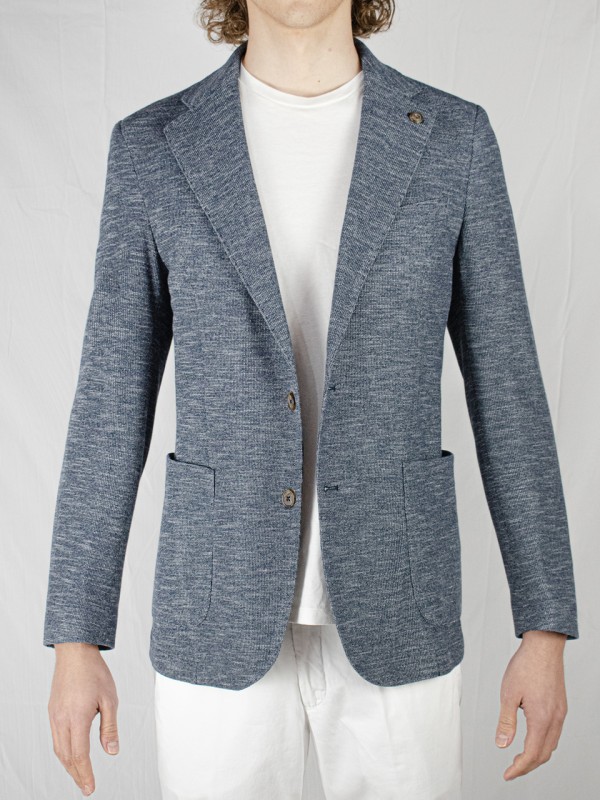 Cuciture punto sellaio su rever, lista petto e tasche.