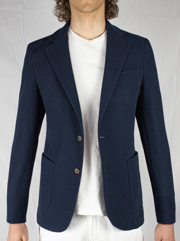 Cuciture punto sellaio su rever, lista petto e tasche.